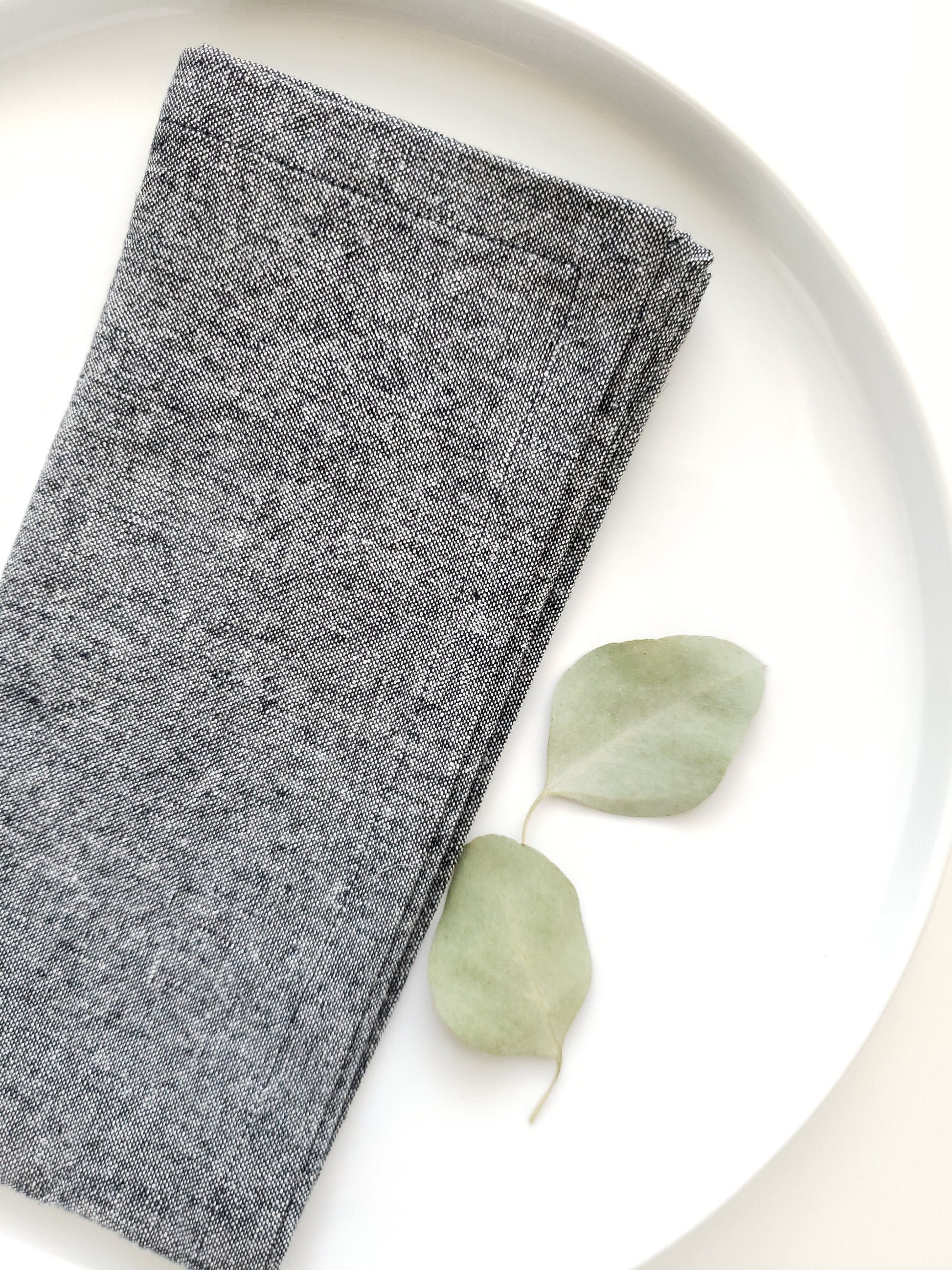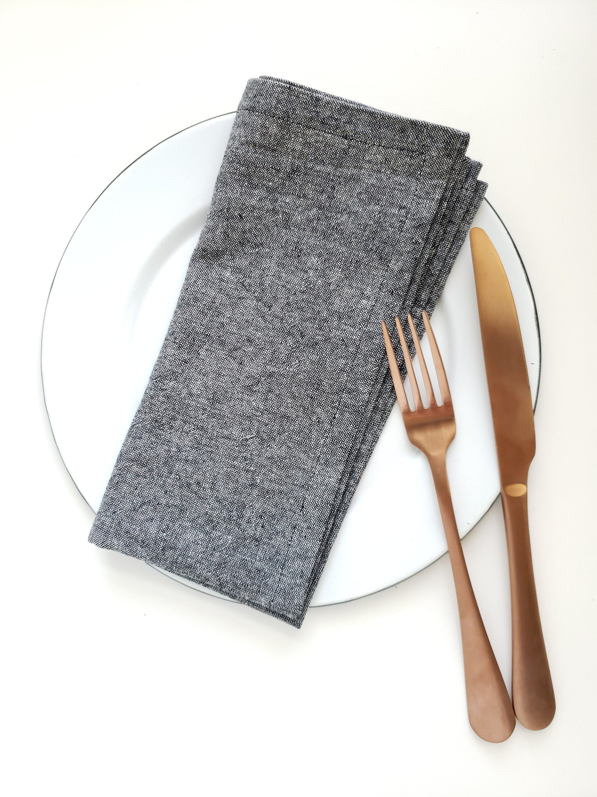 These charcoal black linen napkins are classic and modern for everyday and special occasions. Made of a cotton-linen blend, they will get softer and more beautiful with age.
