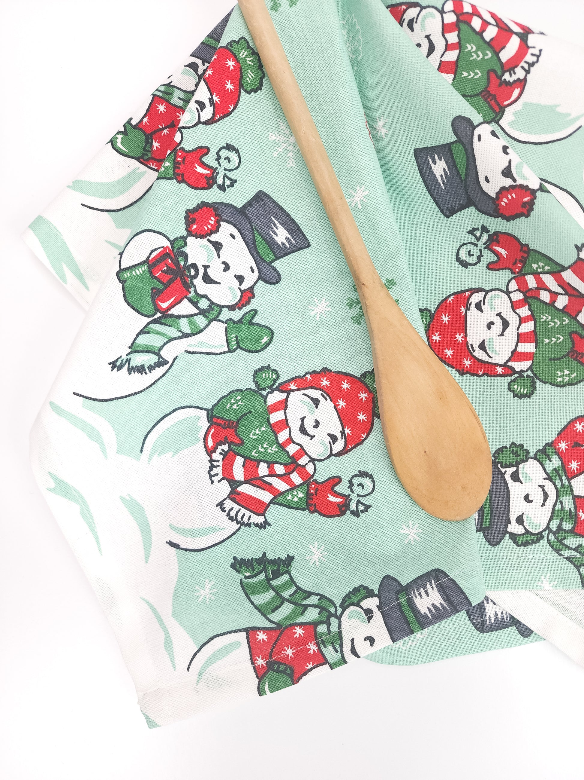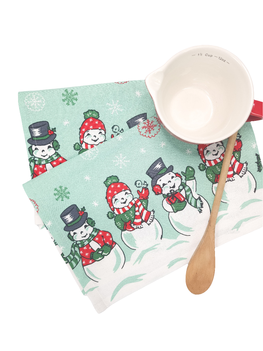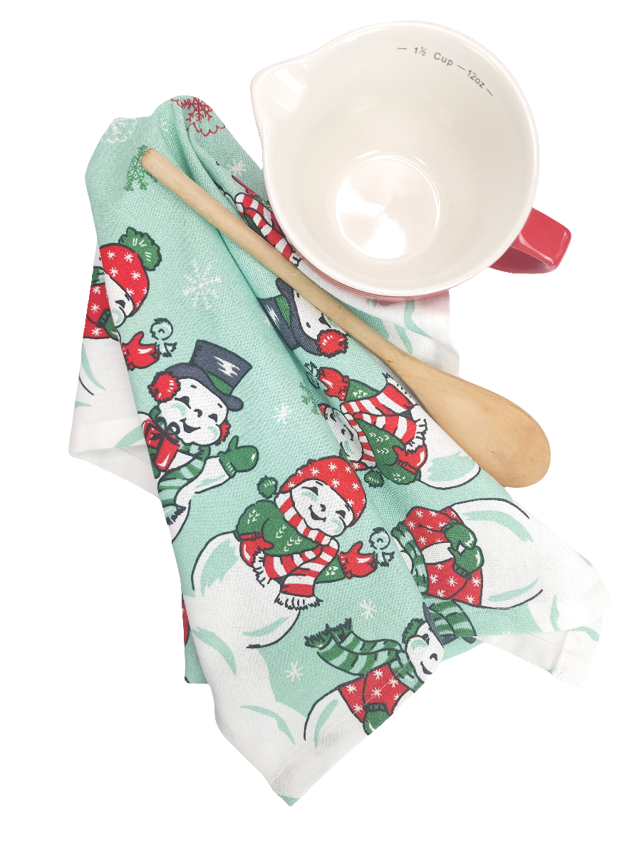 This vintage inspired snowman tea towel brings you back to Christmases of years past. You'll love the sweet faces of the snow people!