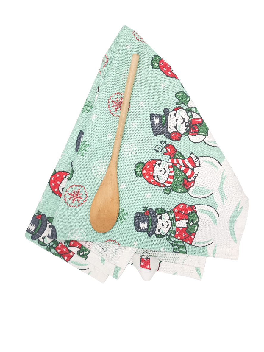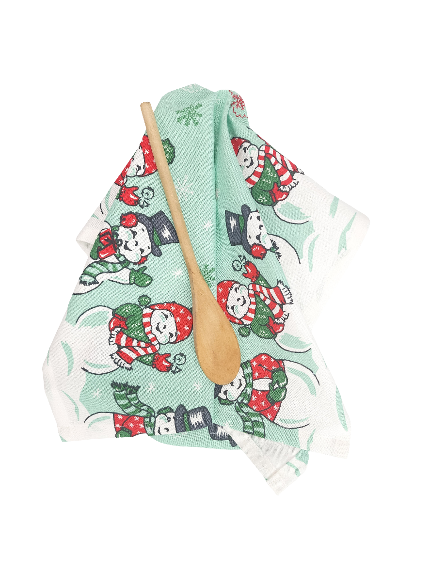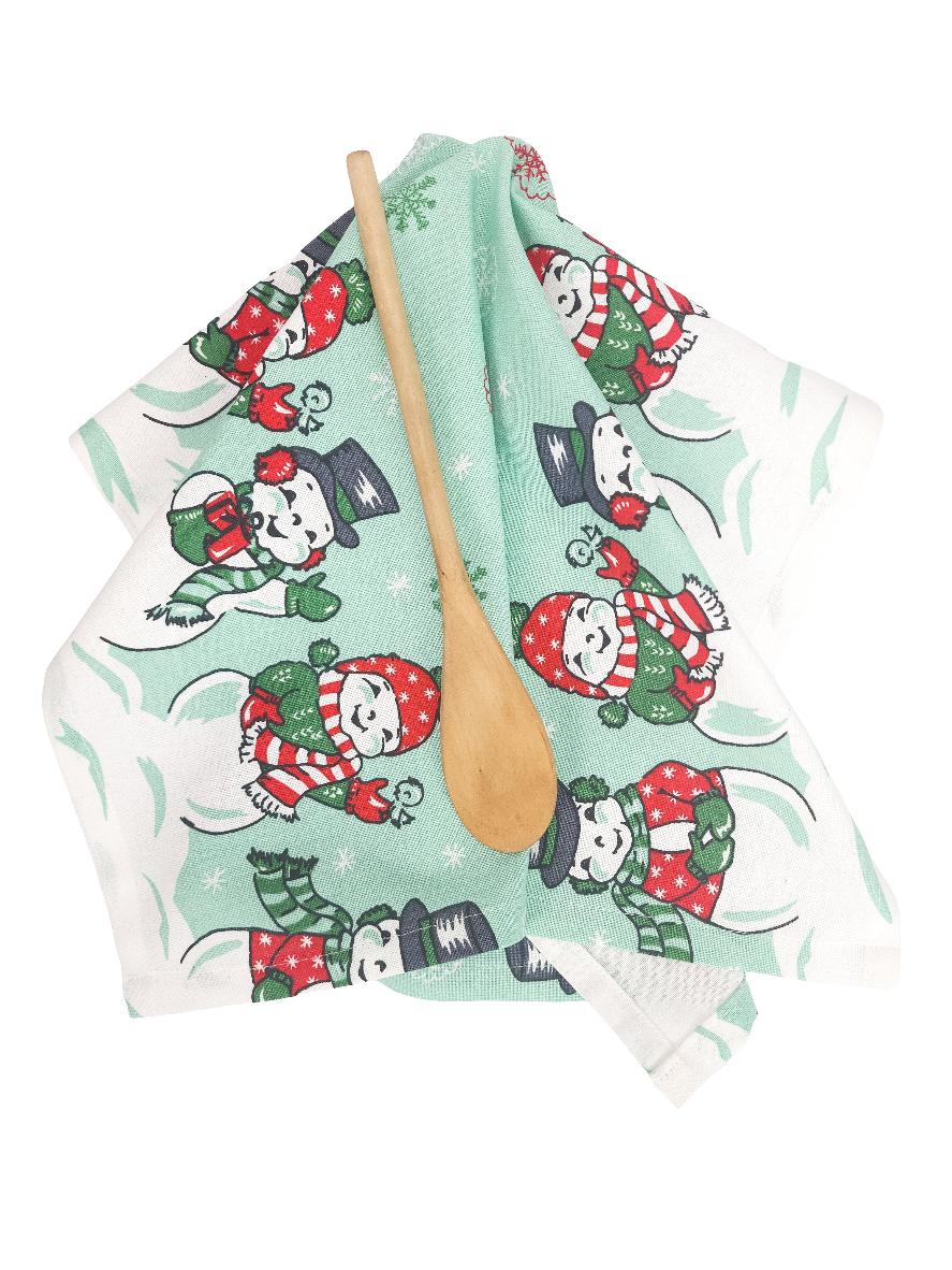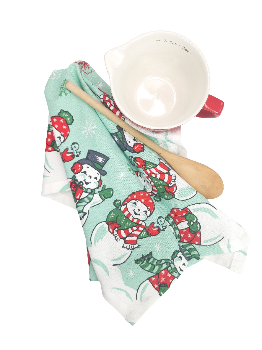 This vintage inspired snowman tea towel brings you back to Christmases of years past. You'll love the sweet faces of the snow people!