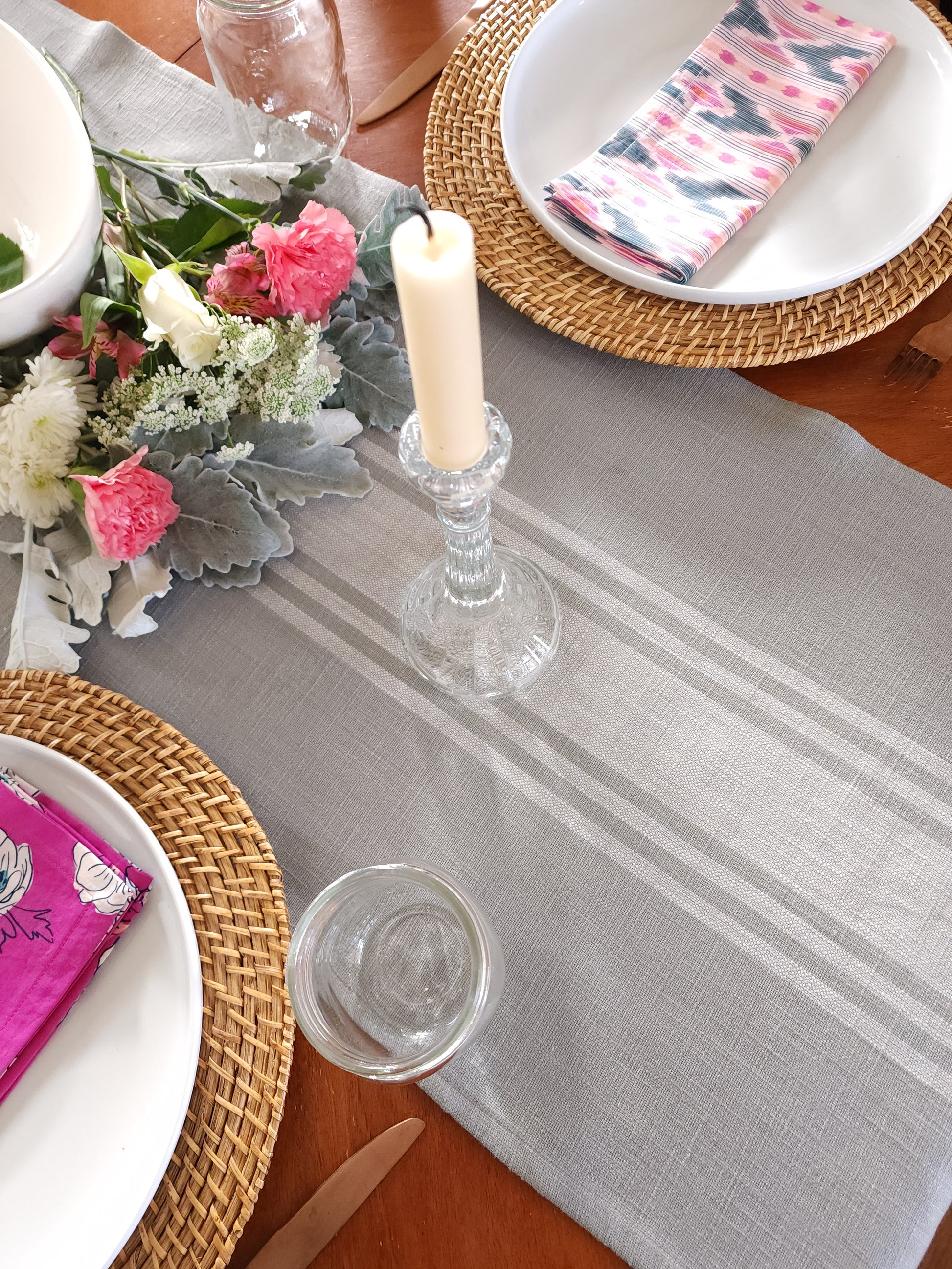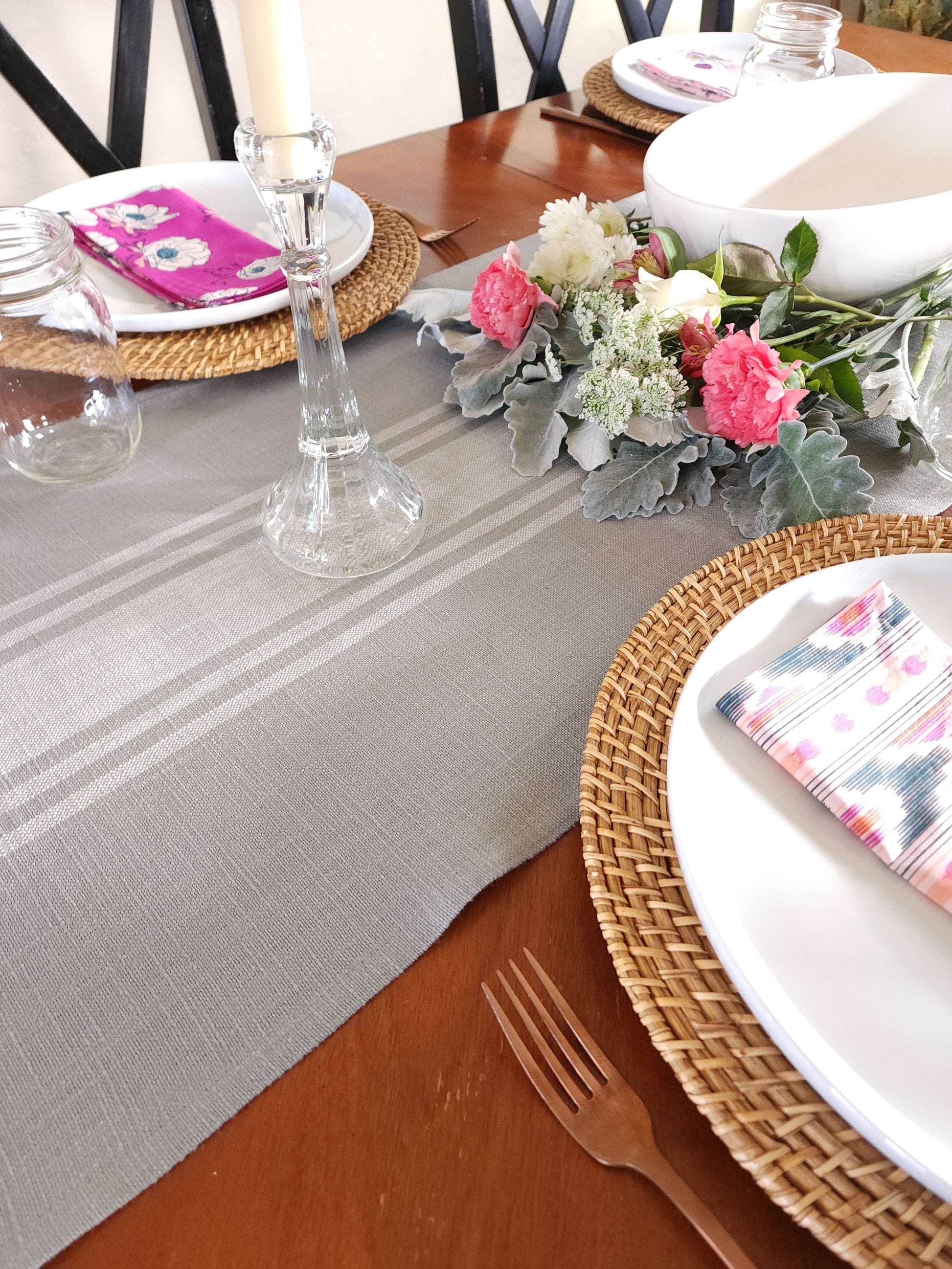 Gray and White Striped Table Runner