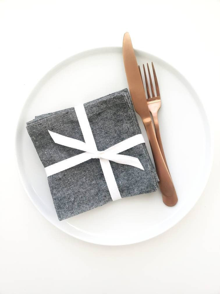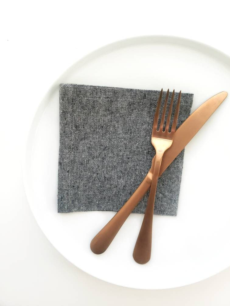 These charcoal black linen cocktail napkins are classic and modern for your bar cart. Made of a cotton linen blend, they will get softer and more beautiful with age.