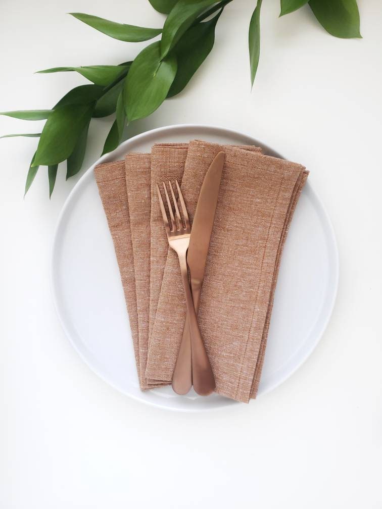 These cinnamon linen napkins are beautiful and modern for everyday and special occasions. The natural texture and cinnamon hue will add to your modern and neutral table aesthetic.