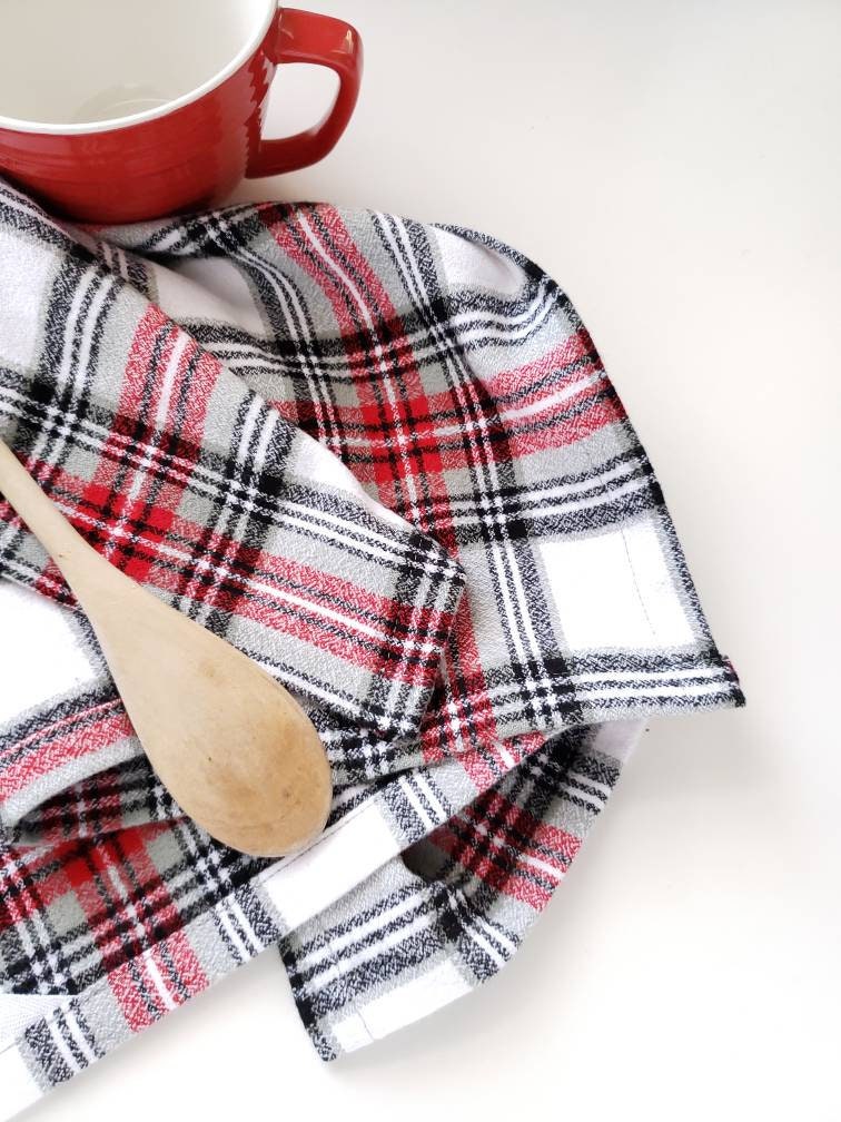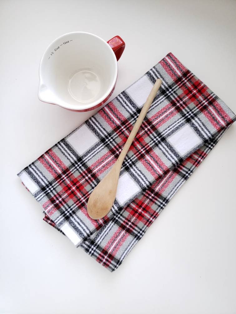 This white, gray, and red plaid flannel towel is a great addition to your fall and winter decor. Made of thick, buttery soft pre-washed 100% cotton flannel, it's absorbent as well as pretty. There's no reason why pretty can't be functional!