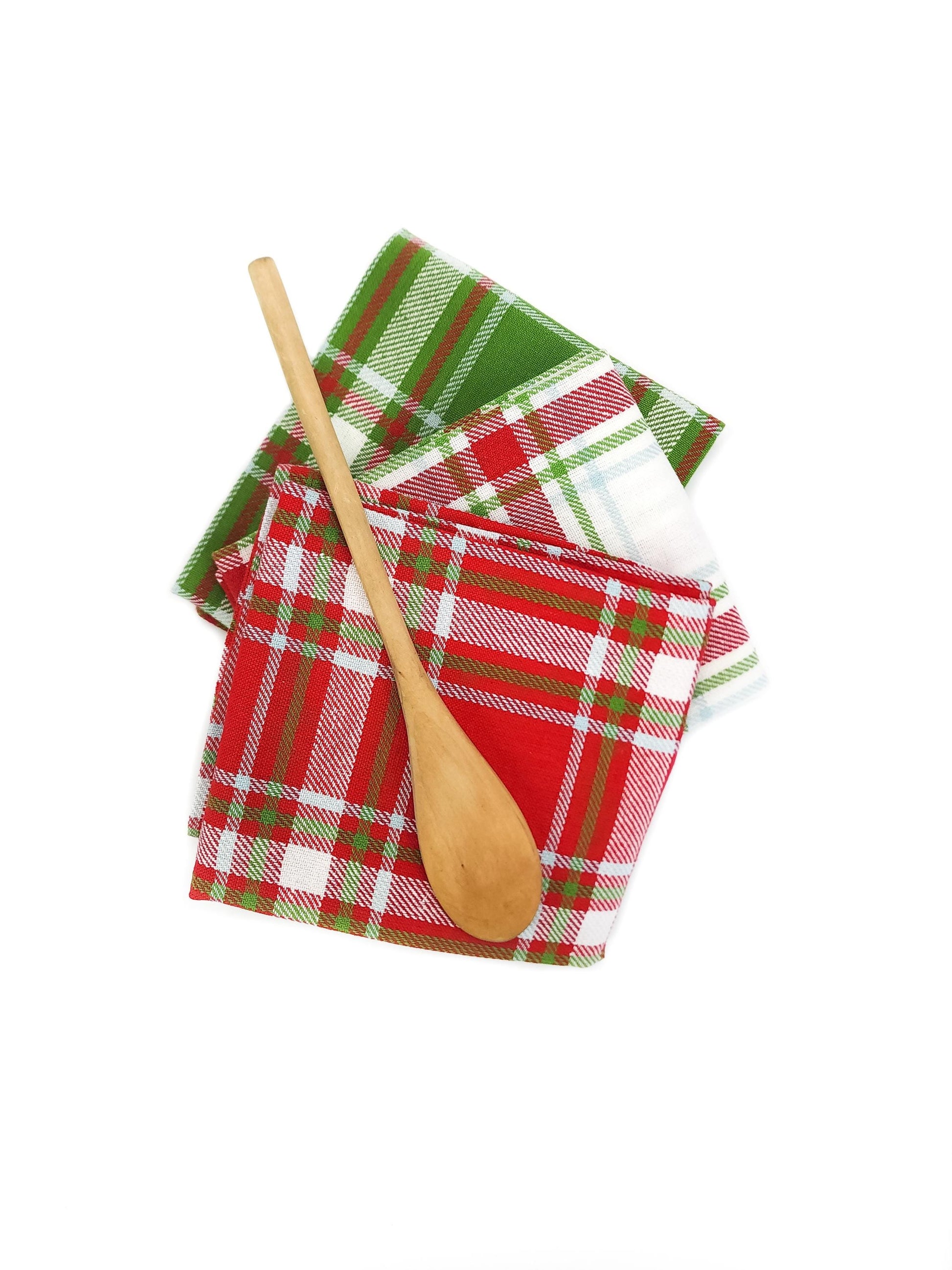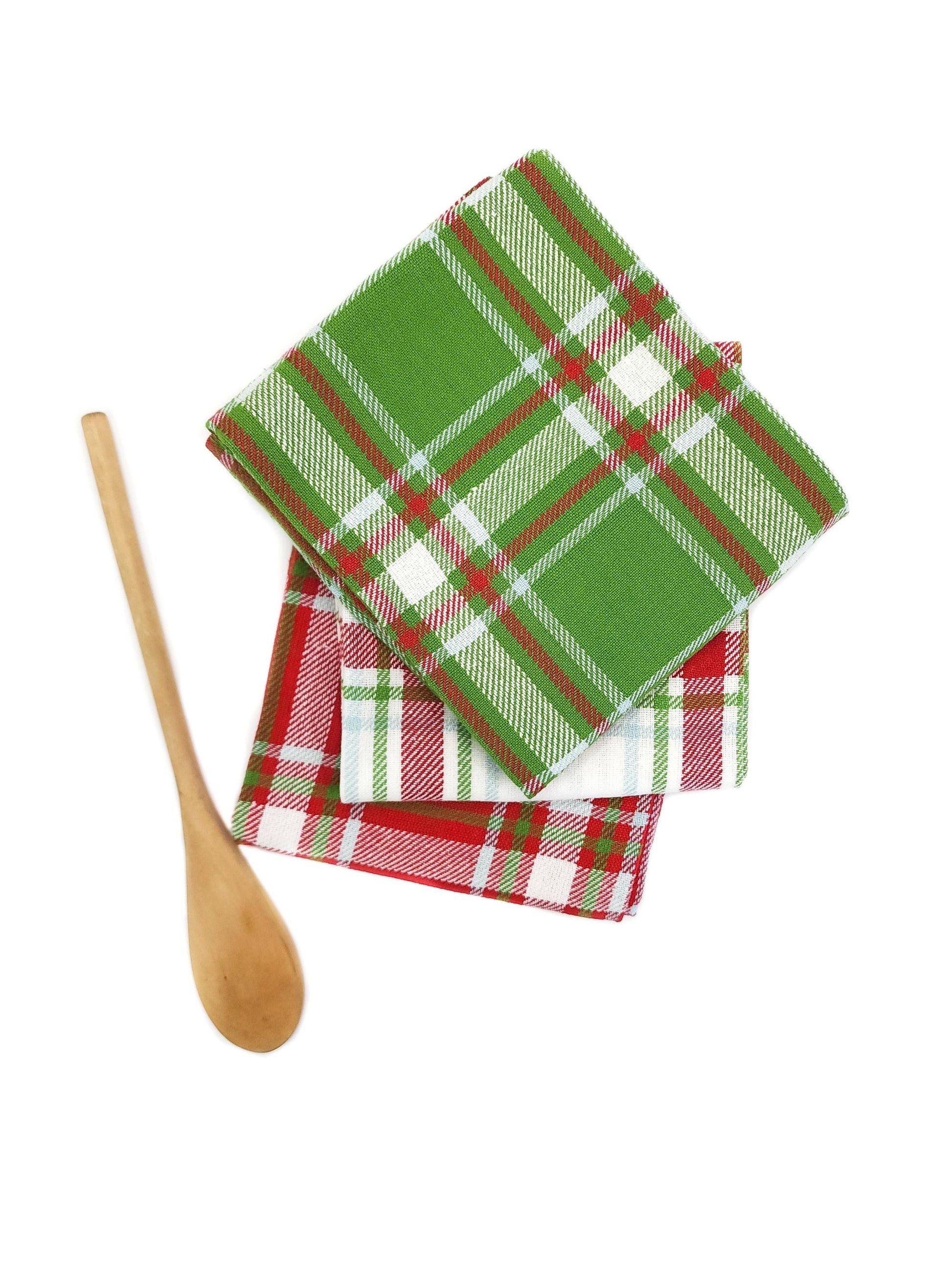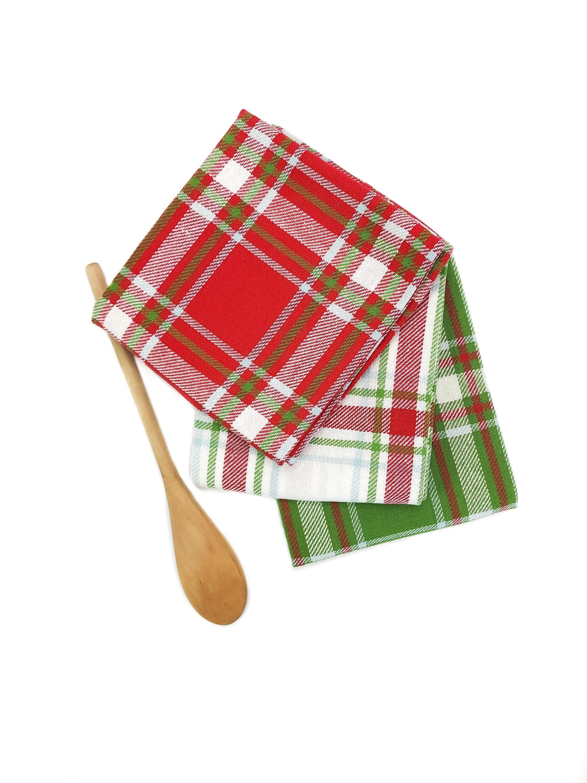 This set of three plaid Christmas tea towels brings holiday color to your kitchen for baking marathons and preparing memorable meals. In classic Christmas colors, these towels make a great gift or the perfect addition to your kitchen for the holiday season.