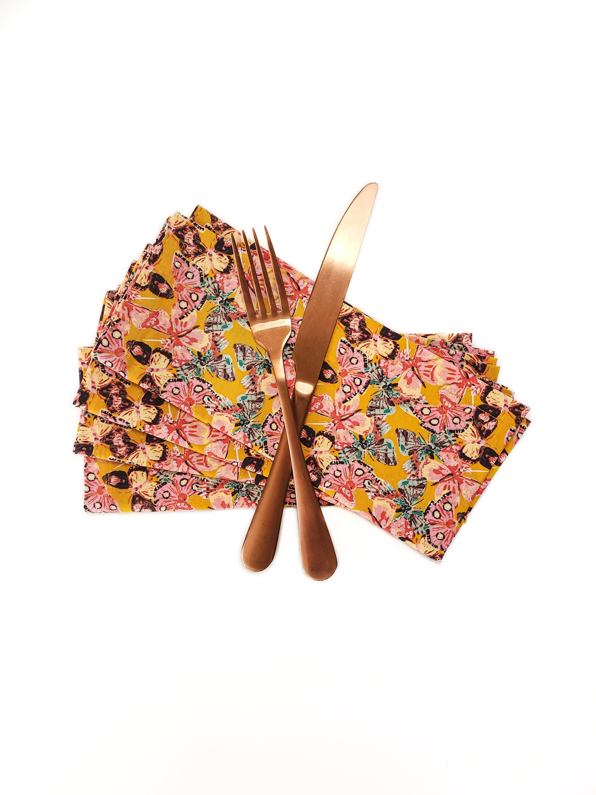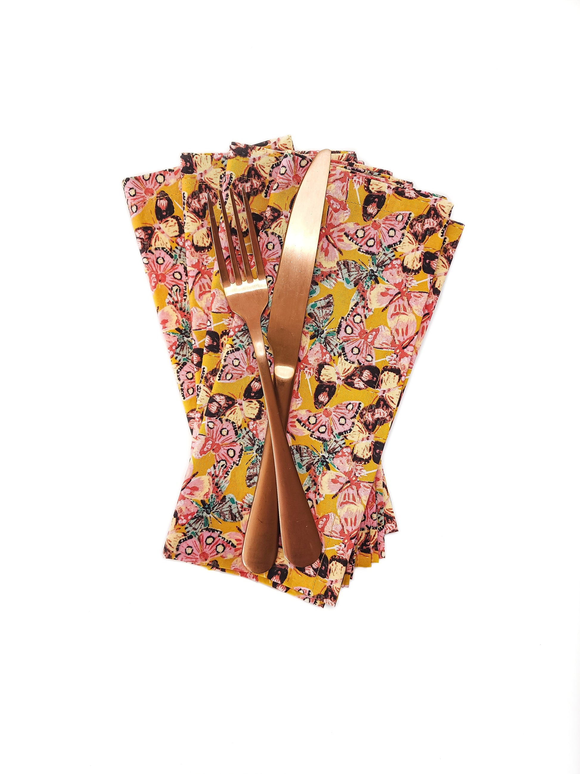 Golden Butterfly Cloth Napkins, Set of 4