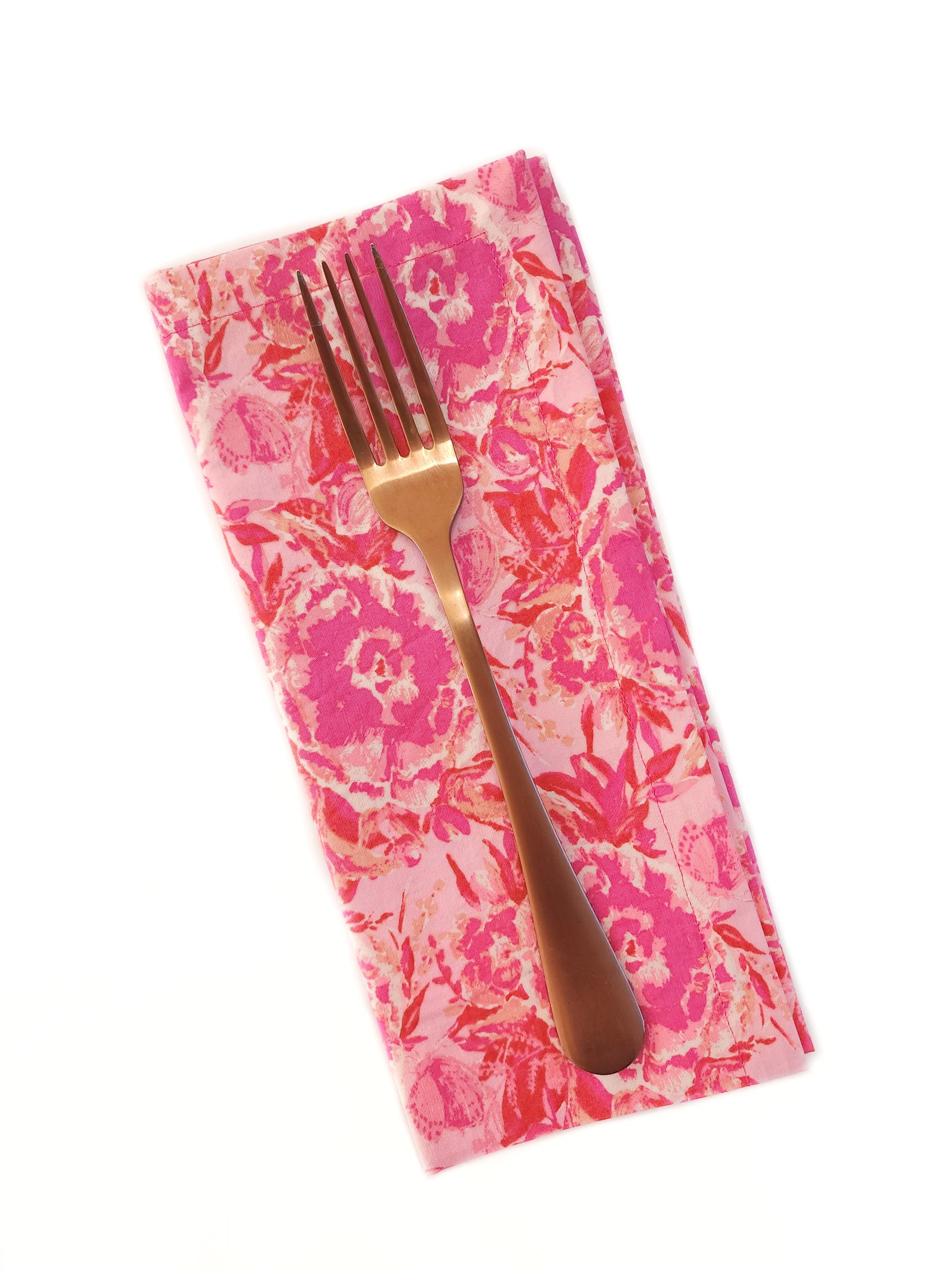 This set of four cloth napkins is made of pre-washed cotton with a maximilasit rose pattern in shades of bright pink. Handcrafted in Denver, CO, with mitered corners for a polished finish. Perfect for everyday use or special occasions, including your Galentine's day brunch or Valentine's day dinner.