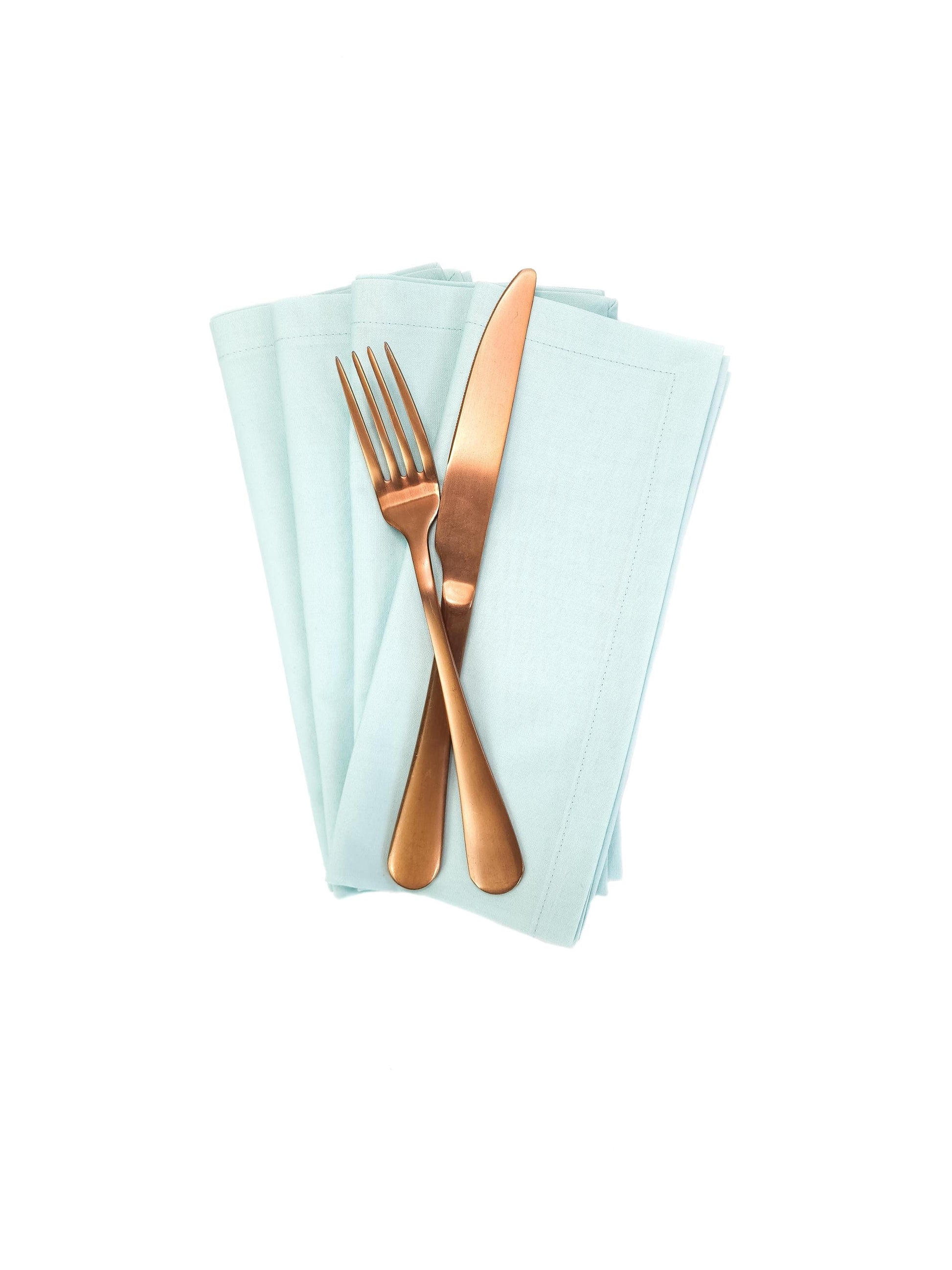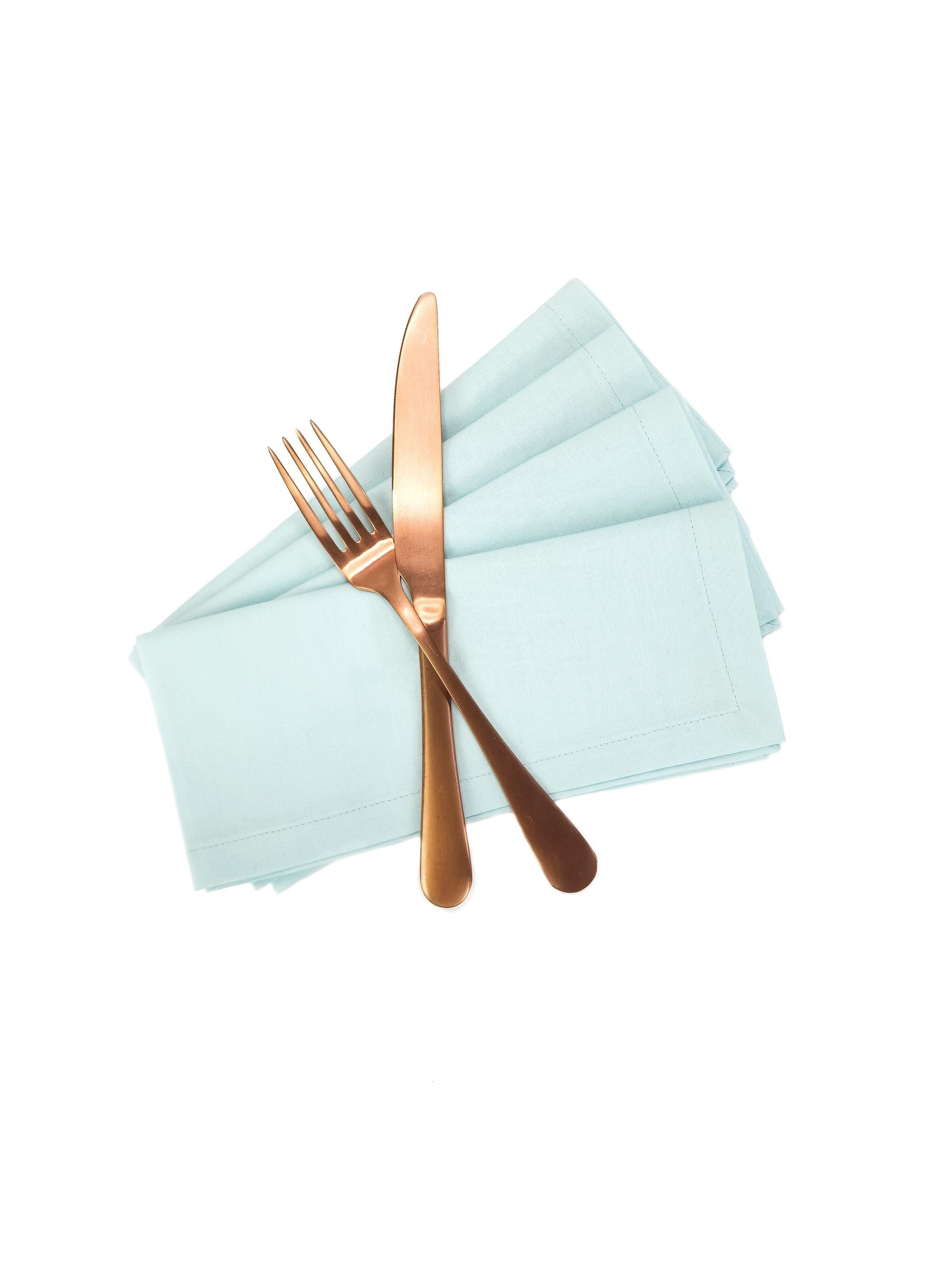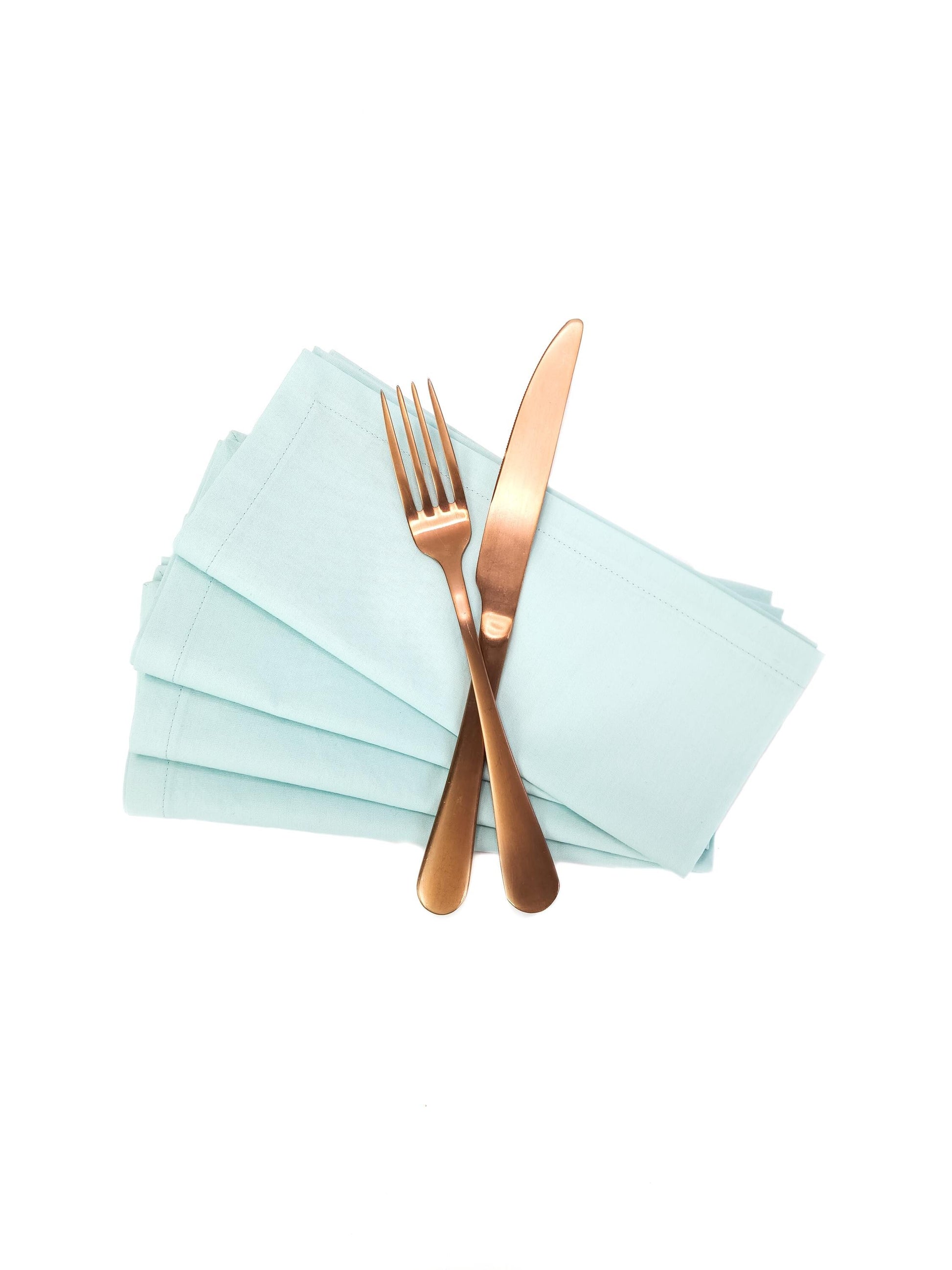 This set of 4 cloth napkins is pale blue like the clear sky on a summer day. Perfect for everyday meals, in your lunchbox, or you picnic basket!