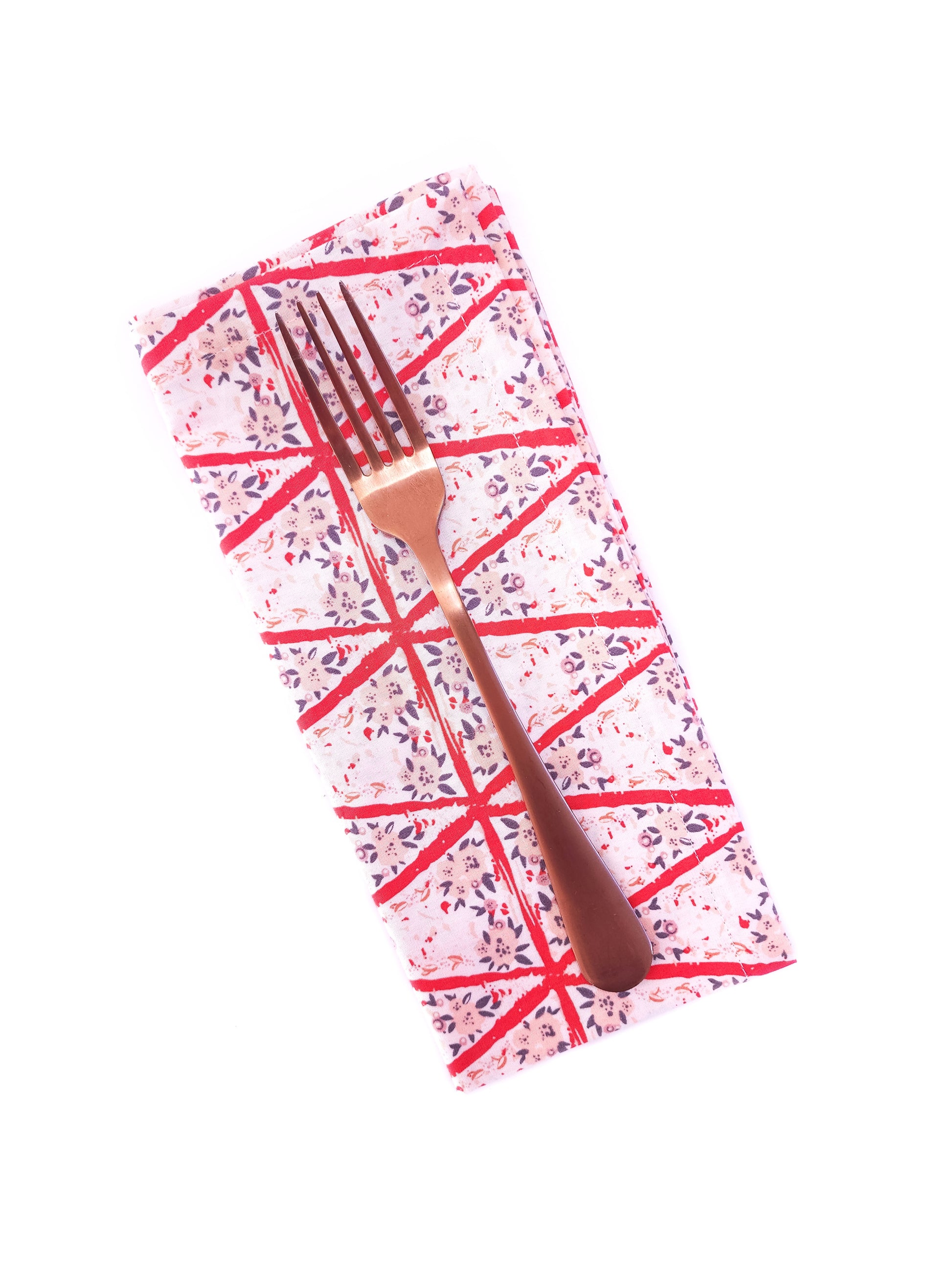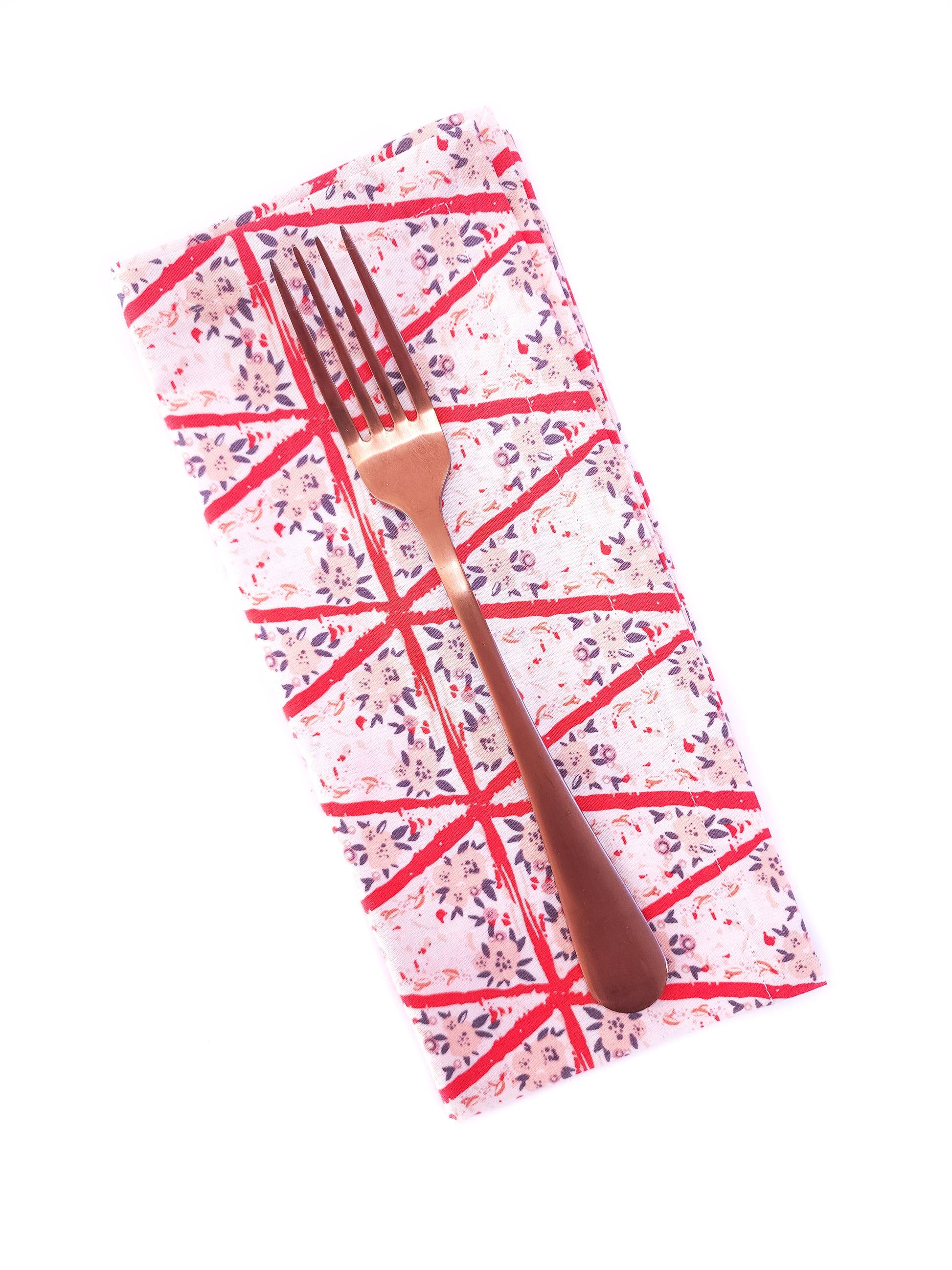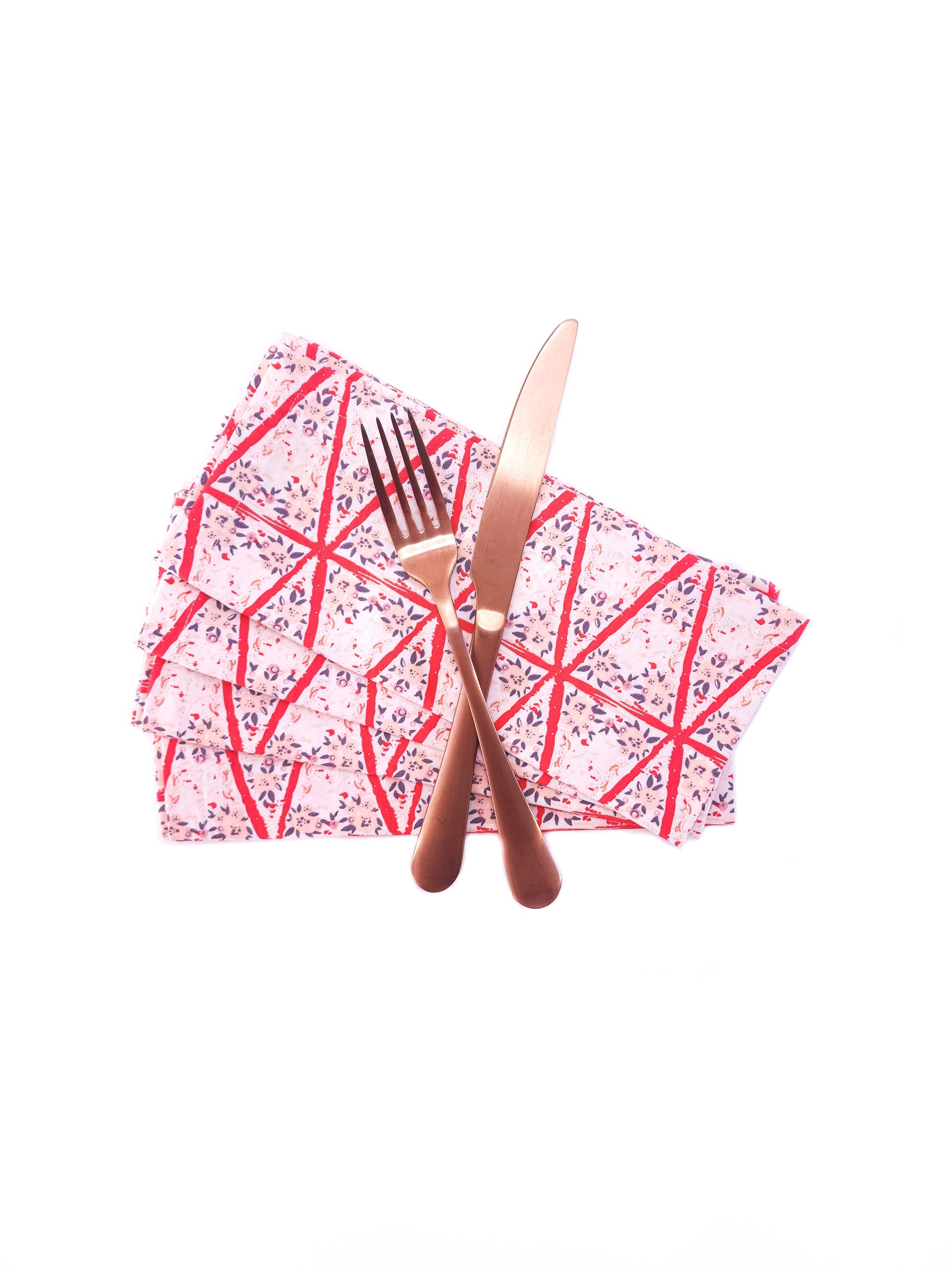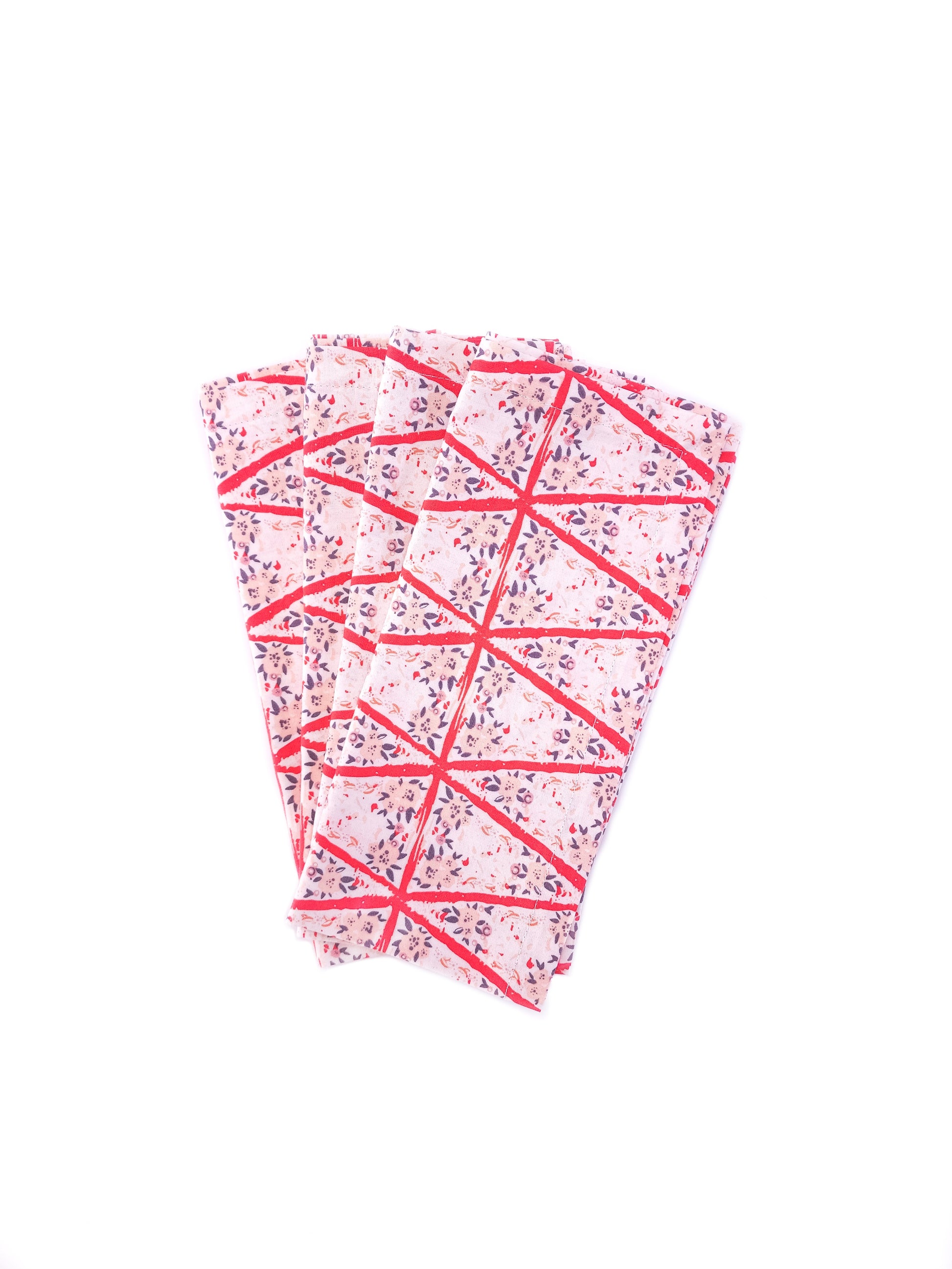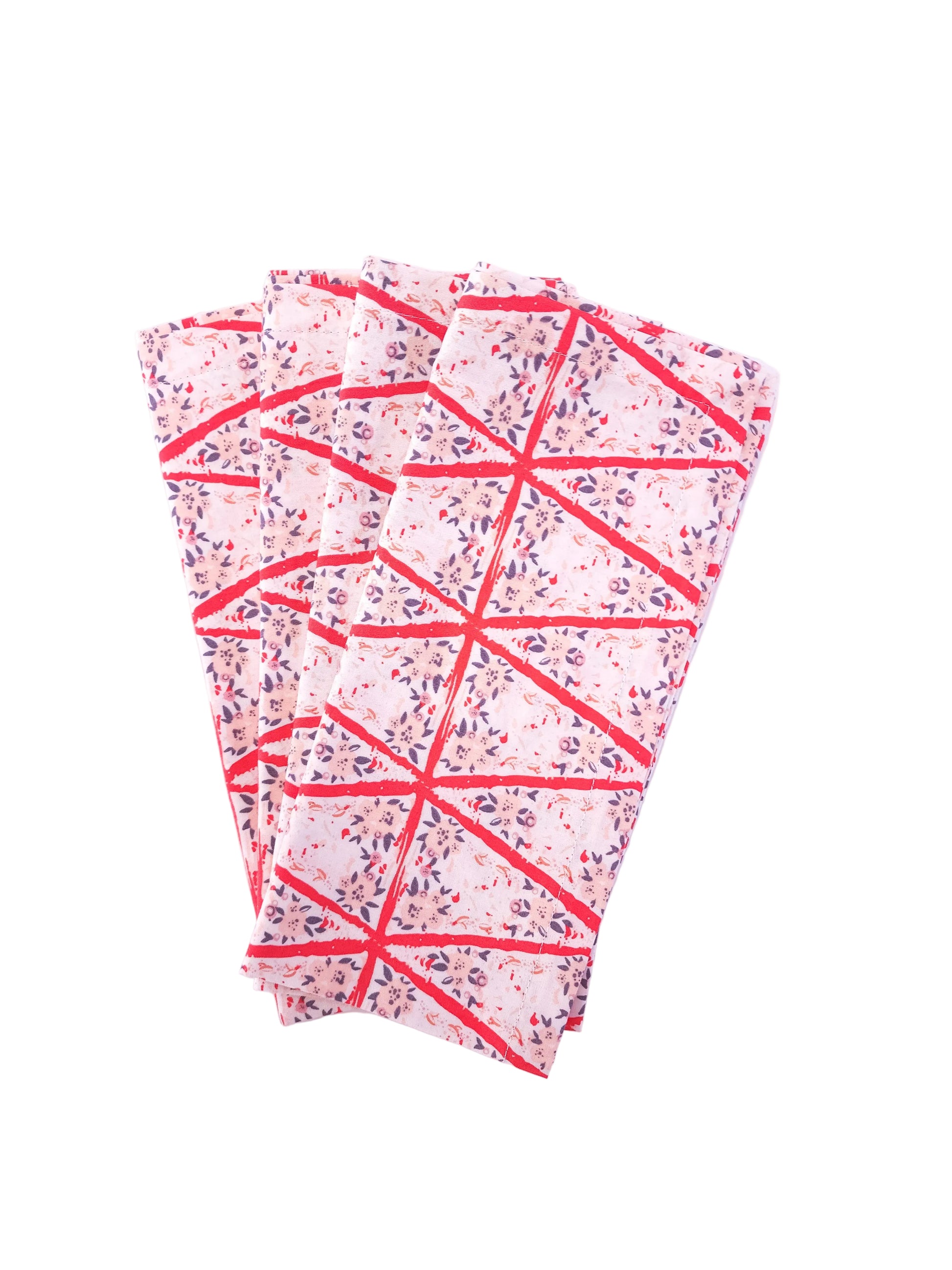 Set your table with this set of 4 napkins made of prewashed cotton with a romantic floral and geometric print that is the perfect addition to your cottage table setting.