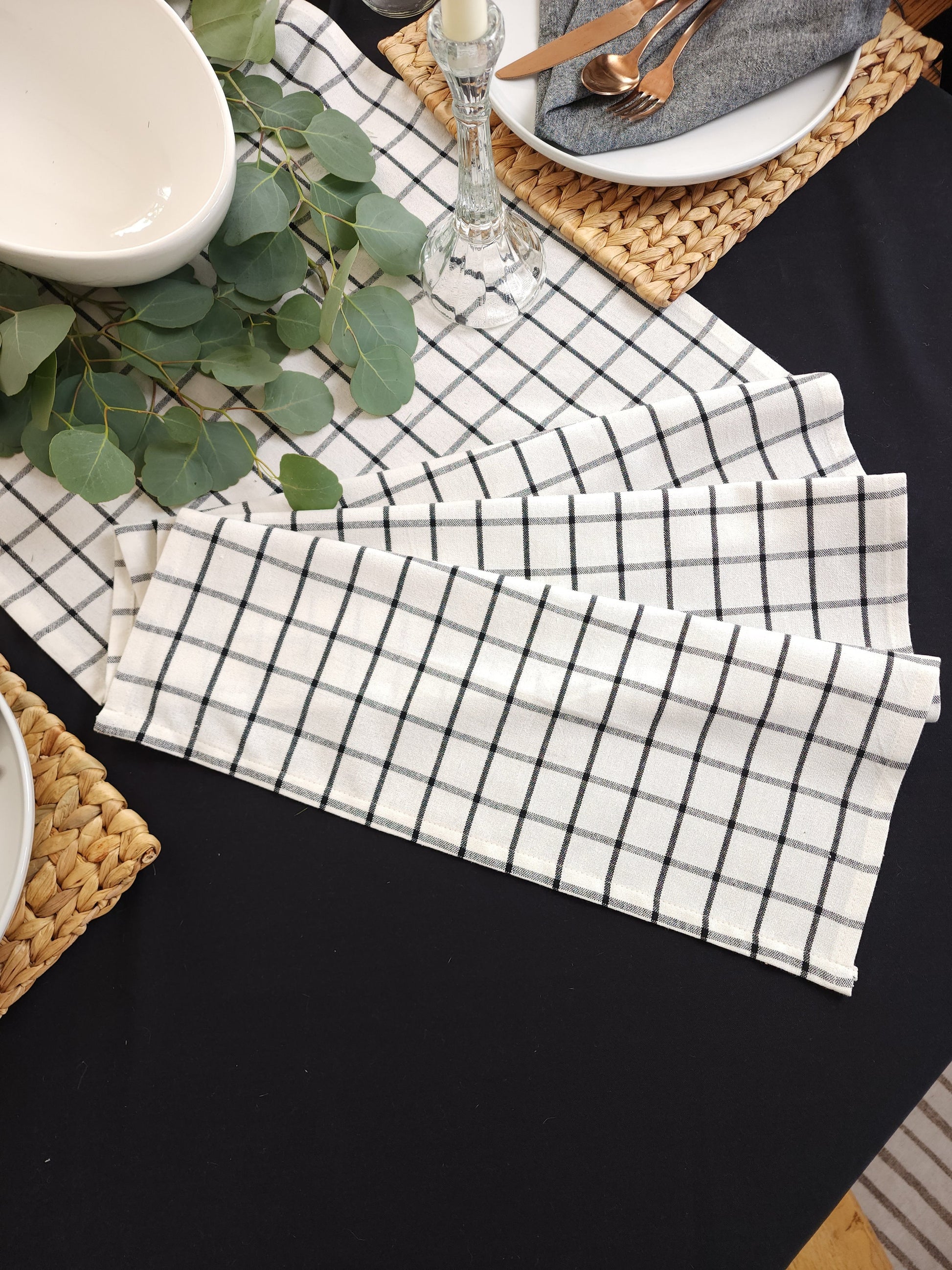 White & Black Checkered Table Runner, White Plaid Table Runner