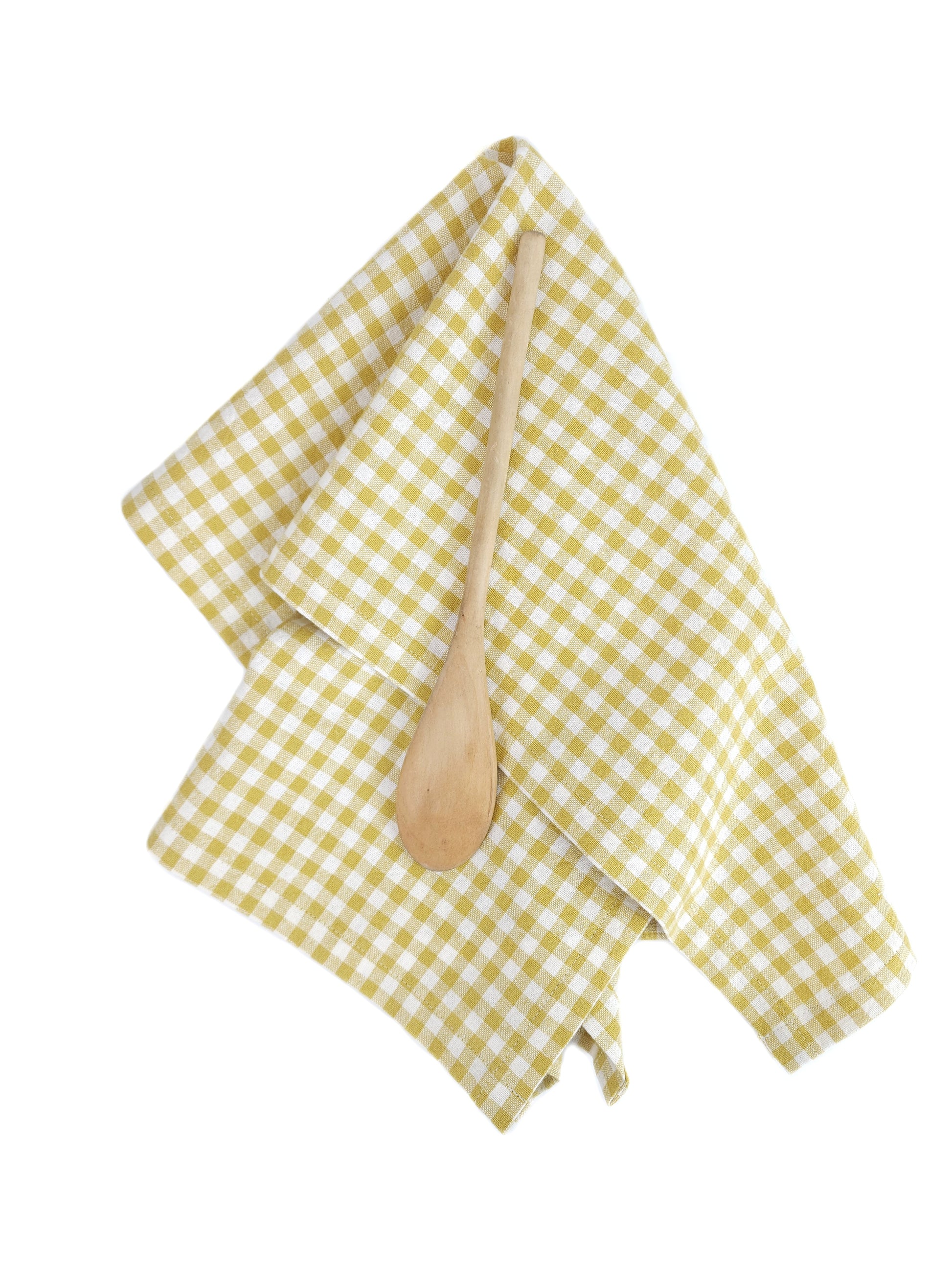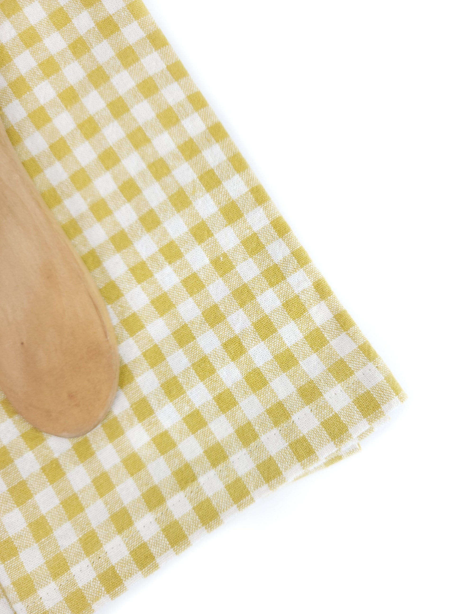 This golden yellow gingham tea towel will add a touch of sunshine to your kitchen. Made of a pre-washed and dried cotton linen blend, it's durable and lovely. The golden checkered woven pattern is sunny and bright. Use it for drying hands, to cover rising bread dough, or as pretty decor for your coffee bar.